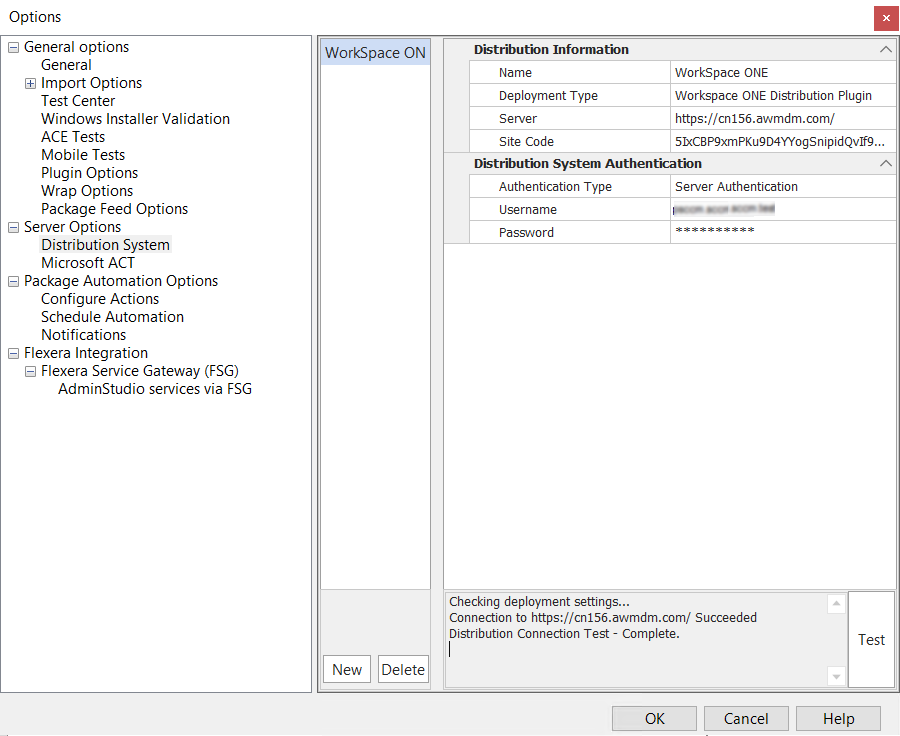 2. Under Servers Options , select Distribution System . The Distribution System tab opens, and lists all defined connections. ![](/images/Workspace ONE screenshot.png)