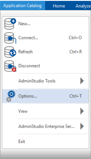 1. On the Application Catalog tab menu, select Options . The Options dialog box opens. ![](/images/Application Catalog_select options_7.png)