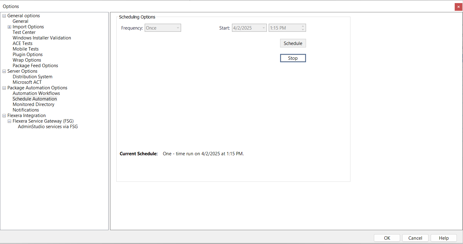 2. Under Package Automation Options , select Schedule Automation . The Scheduling Options tab opens.