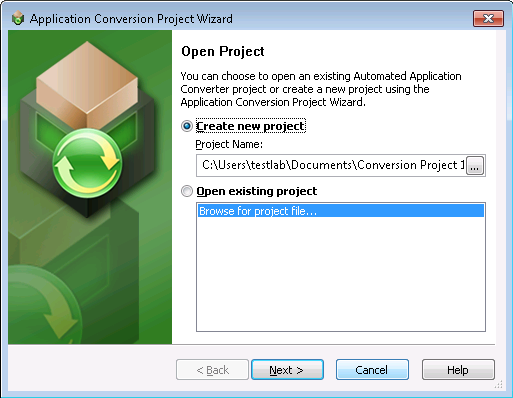 The Open Project panel of the Application Conversion Project Wizard opens.