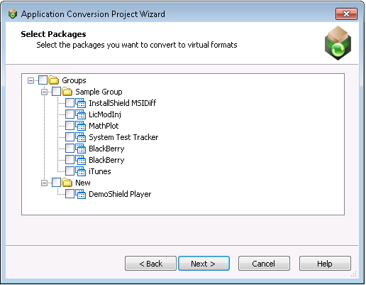 • AdminStudio Application Catalog—If you selected the AdminStudio Application Catalog option on the Select Package Source panel, the Select Packages panel lists all of the packages in the connected package source, in a tree format.