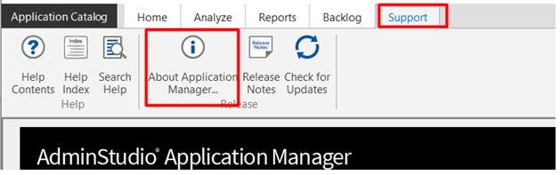- In Application Manager, click on the About Application Manage ribbon button in the Support tab to launch the About Application Manager dialog.